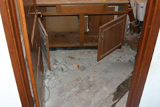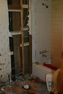 Who is this crazy guy taking apart this bathroom. Doesn't he know that water and electricity don't mix well together?